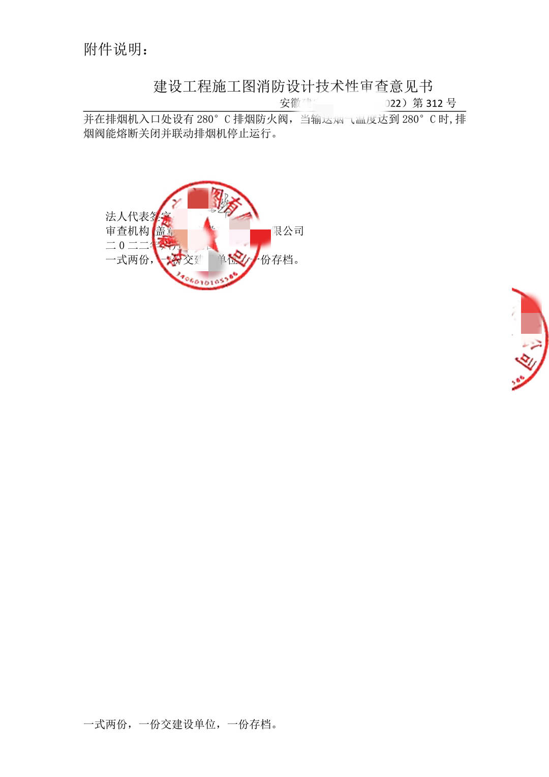 吉安市施工图审查-安徽某机构消防审查意见书